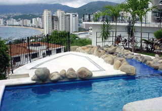 LA CASA DE LAS CASCADAS (3)Se encuentra junto a la Casa del Puente. De estilo mediterráneo. Esta casa cuenta con 4 recámaras completas; una palapa gigantesca con sala y cocina. Alberca con rio y cascadas hacia el jacuzzi. Jardín y espectacular vista.